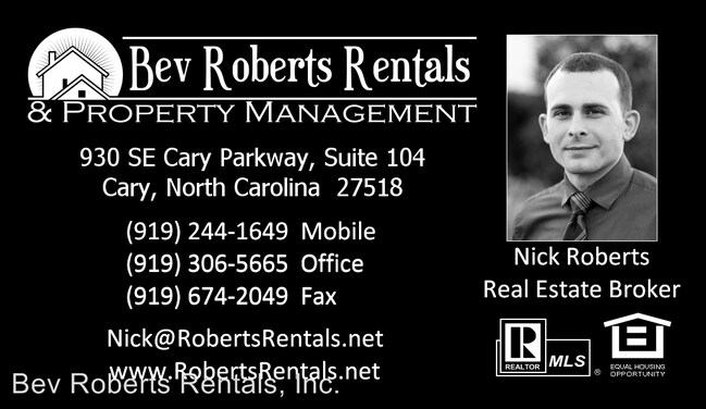 104 Parkway Professional park Cary NC 27518. The companys filing status is listed as Inactive - Dissolution By Proclamation Annulmen and its File Number is 3445726. Bev Roberts Rentals Info Photo 10 Reviews 1 919 306-5.